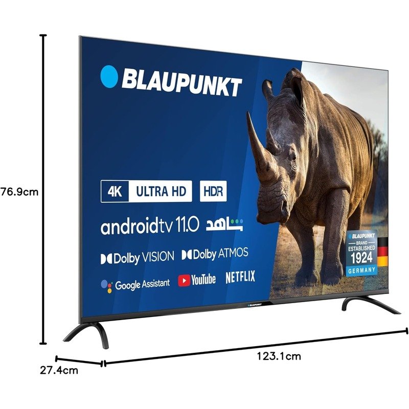 The Blaupunkt 55UB6210D is a 55-inch 4K UHD Android Smart TV that delivers stunning visuals and immersive audio. Powered by Android 11, it offers access to a wide range of streaming services and features advanced technologies like Dolby Vision, Dolby Atmos, and MEMC for an enhanced viewing experience.
