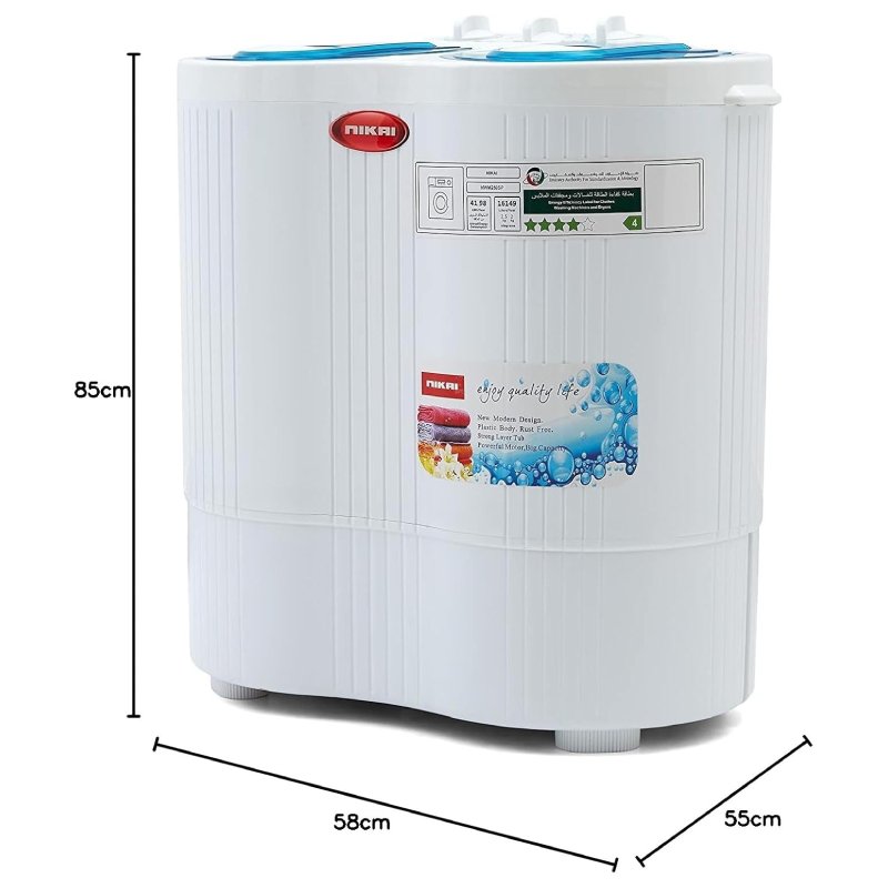 The Nikai twin-tub washing machine is semi-automatic, allowing you to wash and dry at the same time. It is equipped with a powerful pulsator that safeguards your clothing fabrics by minimizing wear and tear. The highlighting feature of this appliance is that it is designed to offer silent and noise-free operation.