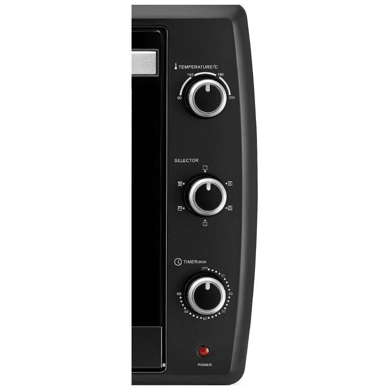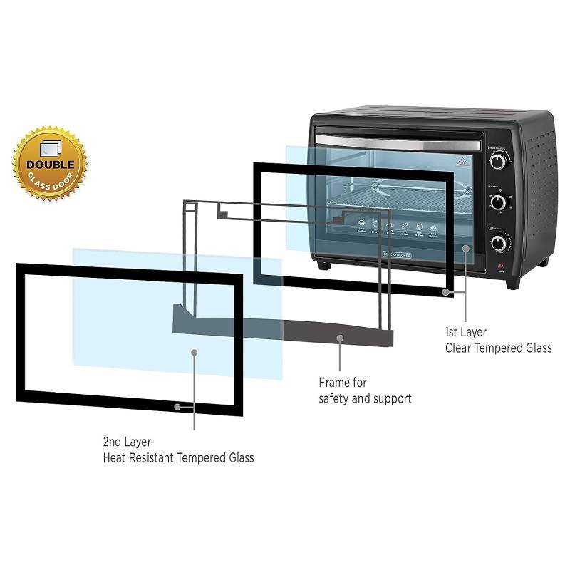 The Black Decker Toaster Oven 70L includes an adjustable thermostat ranging from 90°C to 230°C. It also offers a 60-minute timer with auto shut-off for safe operation. The accessories included make everyday cooking simple and enjoyable.