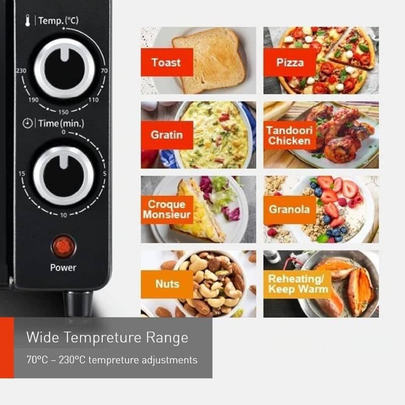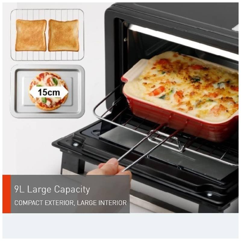 With its 9-liter capacity, this oven is perfect for small families or individuals who enjoy baking pastries, pizzas, or grilling snacks. It delivers uniform heat distribution for perfect results every time.