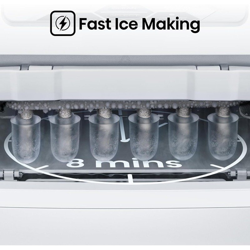 Fast Ice Making: Generates 12 pieces of ice per cycle in just 8 minutes, providing quick refreshment options.