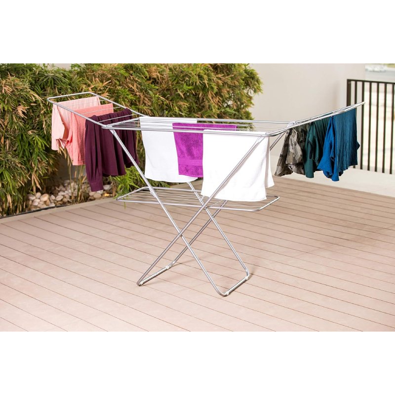 • VERSATILE – One wing for hanging small pieces of garments such as socks, underwear, handkerchiefs, etc.; the middle rack is ideal for placing towels or pillows; With extra space between each rung, the cloth dryer allows better airflow and circulation to help clothes and garments dry faster.