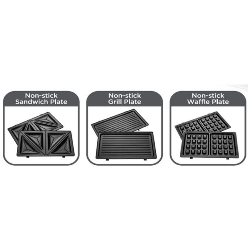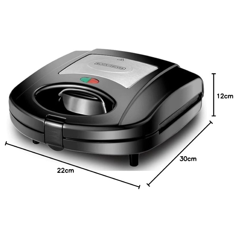 This black decker 3 in 1 sandwich maker includes three interchangeable non-stick plates — for sandwiches, waffles, and grilling. You can easily switch between plates for different recipes, from crispy toasties to golden waffles.