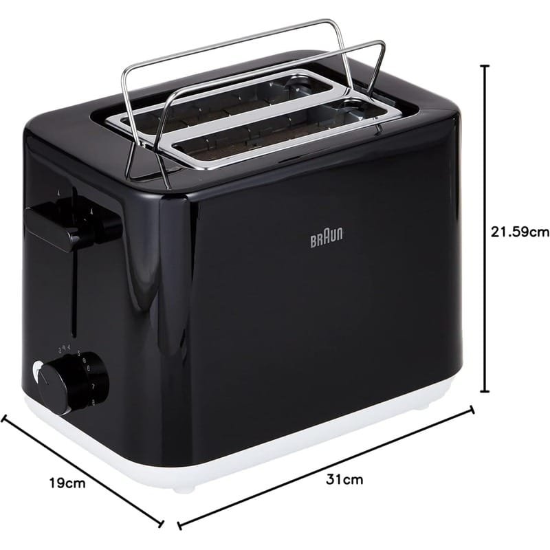 Braun Breakfast Toaster HT1010BK – 2 Slots, 8 Browning Settings, Bun Warmer, 900W, Black