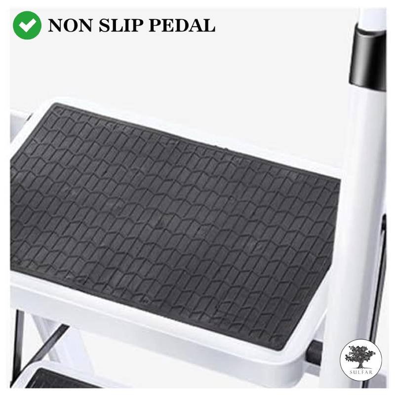 • NON SLIP PROTECTION: The ladder has a wide tread with a non-slip rubber pattern and a width to meet heel-to-toe support. The foot is wrapped in a unique patterned rubber, more non-slip while protecting the floor from receiving damage. Together with the soft sponge-wrapped handle, it gives the user a more comfortable and stable climbing experience.