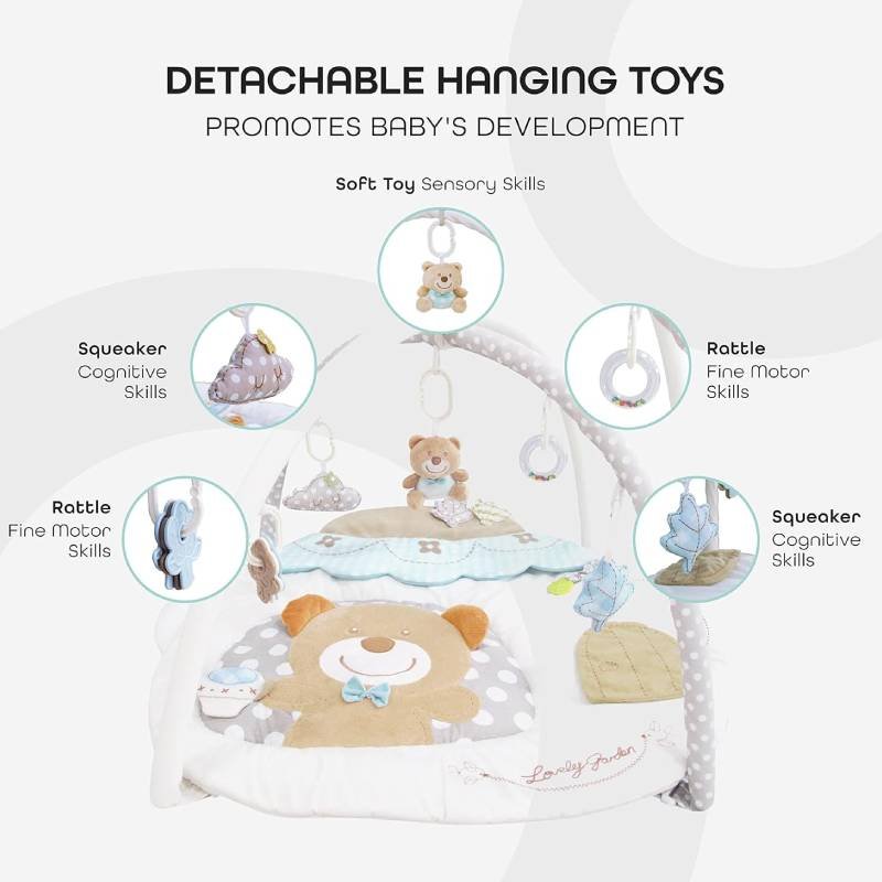 The Moon Brand Perky Baby Playmat and Activity Gym for Newborn Baby & Infant 5 Hanging Sensory Toys Visual, Hearing, Touch, Cognitive Early Development Playmat. Suitable from 0m+ 80cm – Tea Pot