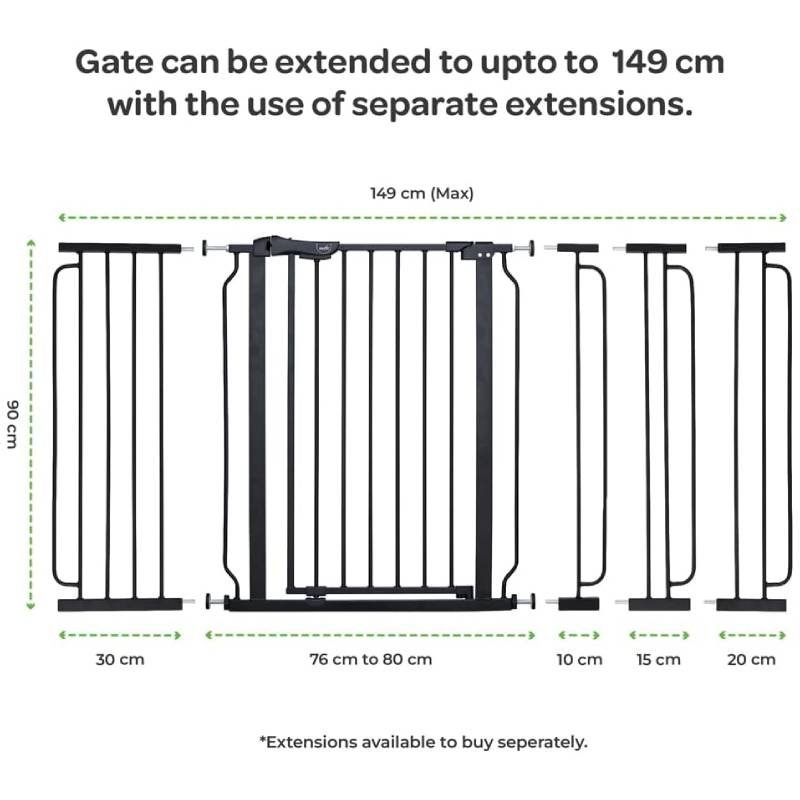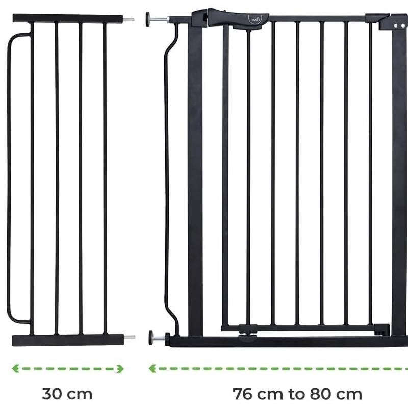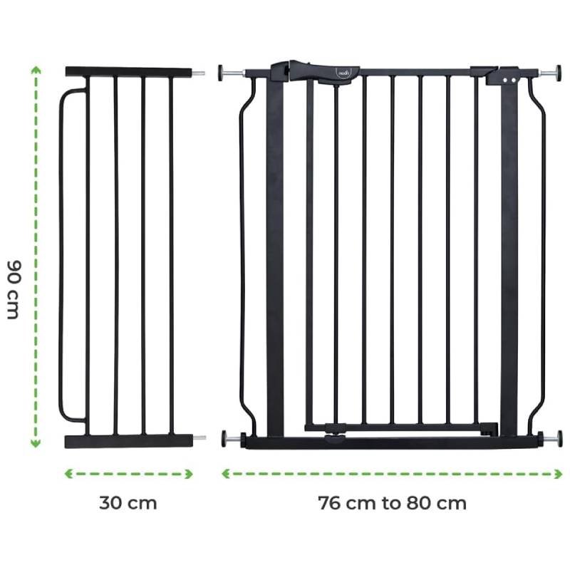 The Moon Brand Secura Baby Safety gate 76-80cm with 30cm extension,Auto lock barrier-Extra Wide metal guard – Child safety and pet protection–Perfect fit-adjustable width-Ideal for stair Case – Black